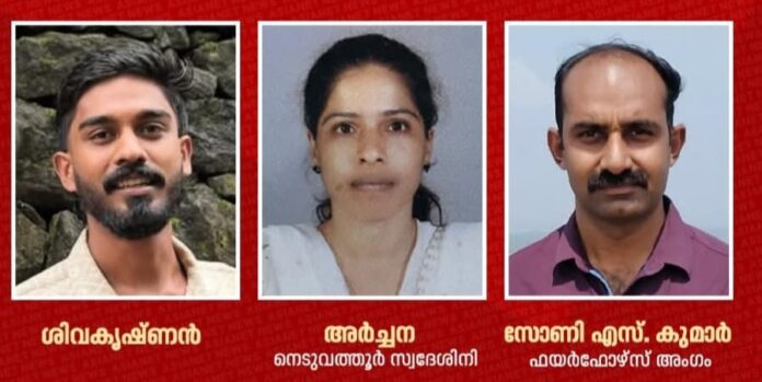 കൊല്ലം കൊട്ടാരക്കര നെടുവത്തൂരിൽ കിണറ്റിൽ ചാടിയ യുവതിയെ രക്ഷിക്കുന്നതിനിടെ ഫയർഫോഴ്സ് അംഗം ഉൾപ്പെടെ മൂന്ന് പേർ മരിച്ചു. കൊട്ടാരക്കര ഫയർ ആൻഡ് റസ്ക്യൂ സംഘത്തിലെ ആറ്റിങ്ങൽ സ്വദേശി സോണി എസ് കുമാറും കിണറ്റിൽ ചാടിയ വെളിയം സ്വദേശിനി അർച്ചനയും അർച്ചനയുടെ ആൺ സുഹൃത്ത് തൃശൂർ സ്വദേശി ശിവകൃഷ്ണനുമാണ് മരിച്ചത്.